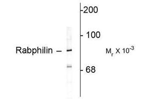 Rabphilin-3A is a peripheral membrane protein that binds Ca2+ and phospholipids and is attached to synaptic vesicle membranes (Geppert et al., 1994,Li et al., 1994). The expression of rabphilin 3A is reduced in an animal model of Huntington's disease (Smith et al., 2005). Rabphilin can be phosphorylated at Ser234 by both CAM kinase II and PKA and this phosphorylation has been suggested to regulate neuronal activity during development in a synapse-specific manner (Fykse et al., 1995,Foletti and Scheller, 2001).Synonyms: Exophilin 1, Exophilin-1, KIAA0985, Rabphilin 3A