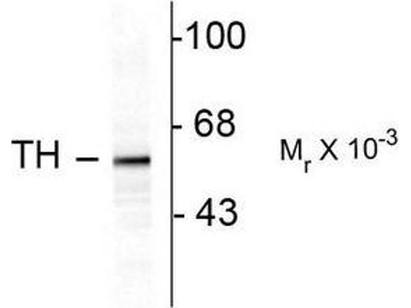 - Specific for the ~60k Tyrosine Hydroxylase protein in Western Blots of Rat brain lysates and PC-12 cells stimulated by Okadaic Acid. The antibody cross reacts with all mammalian and at least some non-mammalian forms of the enzyme in Western blots and in IHC/IF.