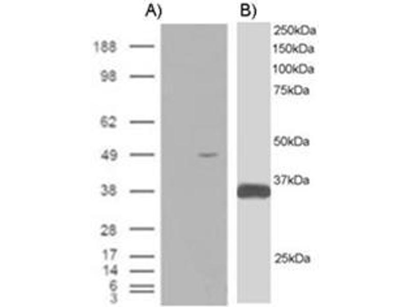 Peptide ELISA: 1/32000. Western blot: 1 - 3 μg/mL. Approx 35 kDa band observed in Human Heart, Liver and Musclelysates (calculated MW of 47.5 kDa according to NP_061041.2 (alpha isoform) and 31.5 kDaaccording to AAF71042.1(beta isoform). In transfected HEK293 transiently expressing ILPIPa band of approx.45 kDa is observed. This band is not observed in the non-transfectedHEK293. Immunohistochemistry on paraffin sections: 3 - 5 μg/mL. Other applications not tested. Optimal dilutions are dependent on conditions and should be determined by the user.