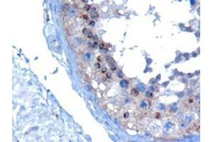 Peptide ELISA: Limit dilution 1: 1000. Western blot: 1-3 μg/mL. Approx 24 kDa band observed in H460, Human Testis and Brainlysates (predicted MW of 24 kDa according to NP_057292.1). Immunohistochemistry: 10 μg/mL. In paraffin embedded Human Testis, stains acrosomalhead caps in round spermatids.
