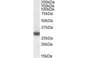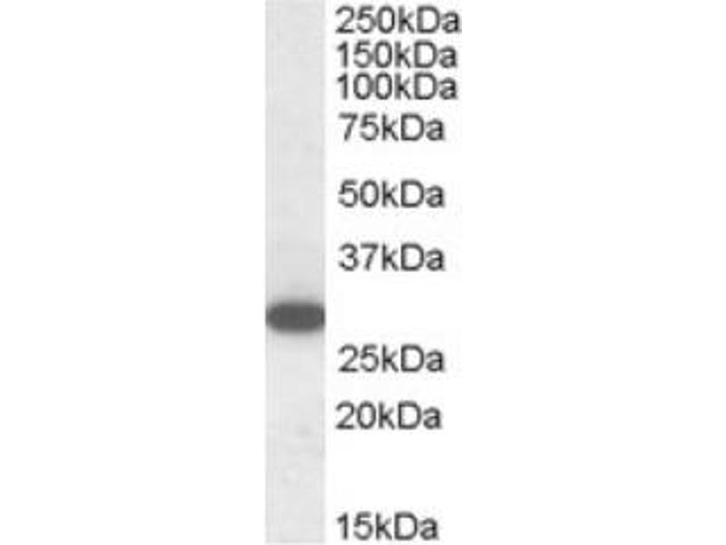 Peptide ELISA: 1/16,000. Western Blot: 1-3 μg/mL. Approx 28 kDa band observed in Human Peripheral BloodMononucleocytes (lymphocytes) lysates (calculated MW of 27.8 kDa according toNP_570138.1).