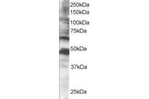 Peptide ELISA: 1/128000. Western Blot: 0.5-2.0 μg/mL. Approx 65-70 kDa band observed in Human Brain lysates(predicted MW of 60 kDa according to NP_085097). Please note this band was always accompanied by a slightly stonger band at approx 40 kDaand further both bands could be blocked by incubation with the immunising peptide.