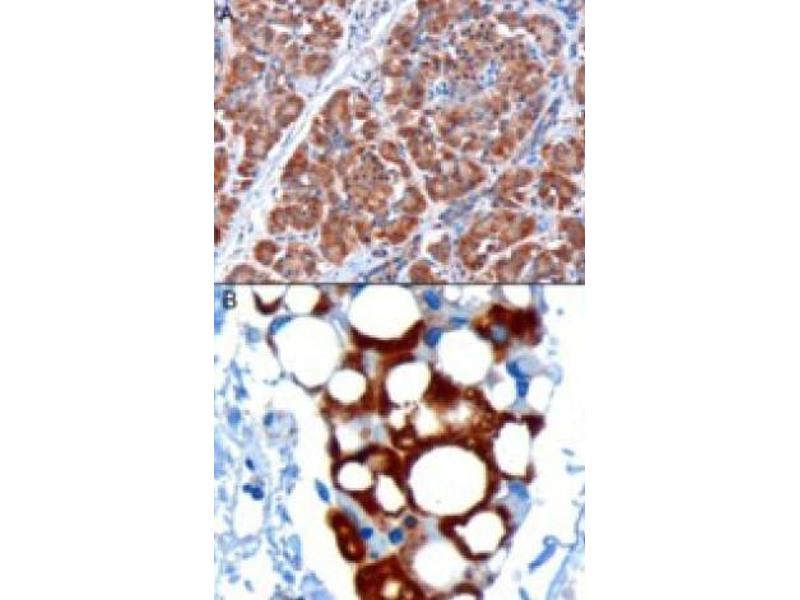 Peptide ELISA: 1/32000. Western Blot: 0.1 - 1 μg/mL. Immunohistochemistry on paraffin sections: 1 - 3 μg/mL.