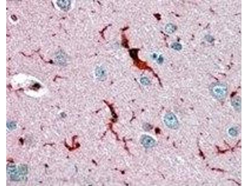 Peptide ELISA: Detection Limit: 1/32000. Western blot: 1-3 μg/mL. Approx 22 kDa band observed in Human Liver and Kidney lysates(calculated MW of 22.2 kDa according to NP_000572.2). Immunohistochemistry: 3.5 μg/mL. In paraffin embedded Human Cerebral Cortex shows staining of microglia.