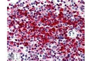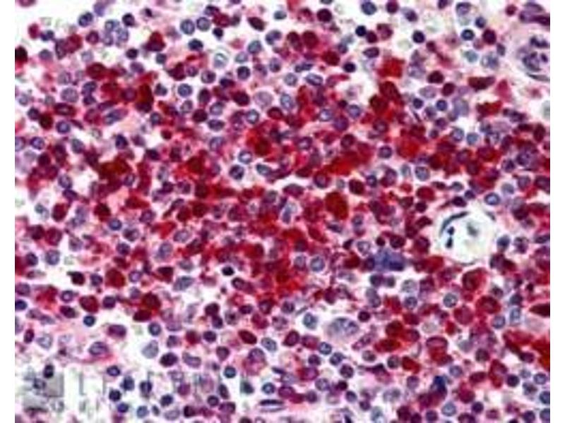 - Peptide ELISA: antibody detection limit dilution 1: 128000. Western blot: Preliminary experiments gave an approx 70-75 kDa band in Human BoneMarrow, Duodenum and Skin lysates after 0.01 μg/mL antibody staining. Please note thatcurrently we cannot find an explanation in the literature for the band we observe given thecalculated size of 57.5 kDa according to NP_001354.1. The 70-75 kDa band was successfullyblocked by incubation with the immunizing peptide. We would appreciate any feedbackfrom people in the field - have any results been reported with other antibodies/lysates?Have any further splice variants/modified forms been reported?Immunohistochemistry: In paraffin embedded Human Spleen shows strong nuclear