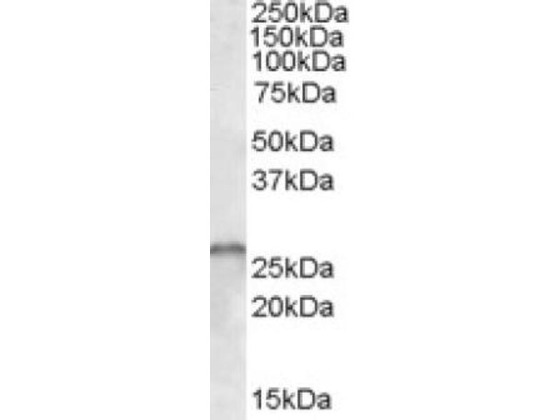 Peptide ELISA: Antibody detection limit dilution 1/32000. Western Blot: 0.3-1 μg/mL. Approx 26 kDa band observed in Human Brain (Cerebellum)lysates (calculated MW of 28.6 kDa according to NP_075012.1 and NP_075014.1).