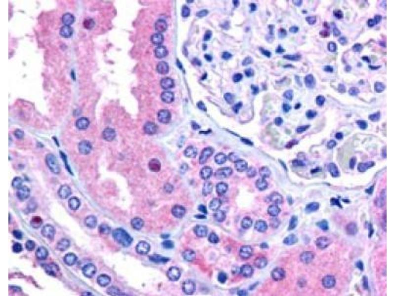 Peptide ELISA: 1/4000. Immunohistochemistry on paraffin sections: 2.5 μg/mL.