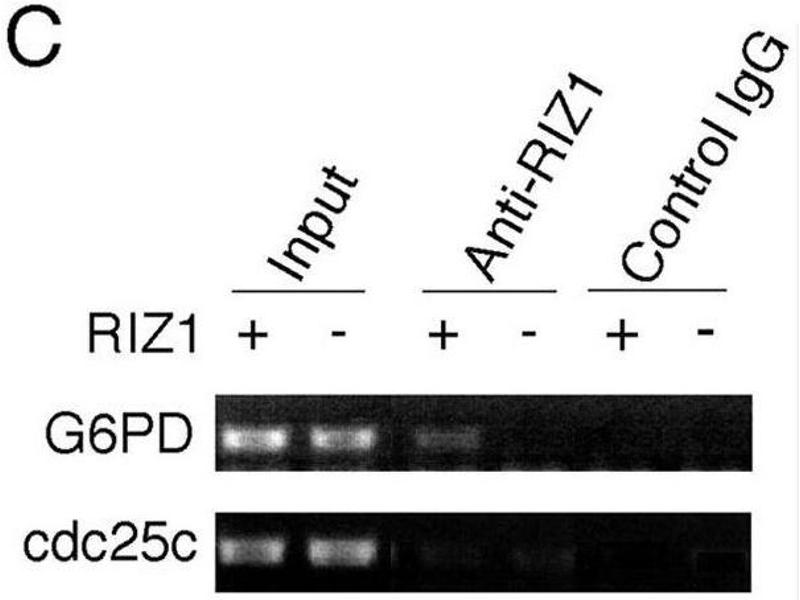 - Purified recombinant GST fusion protein encoding aa 1-347 of human RIZ1. This antibody is specific for RIZ1, it does not recognize the isoform beta (RIZ2).