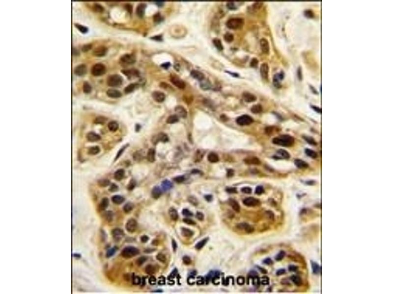 This PRMT1 antibody is generated from rabbits immunized with a KLH conjugated synthetic peptide between 317-346 amino acids from the C-terminal region of human PRMT1.