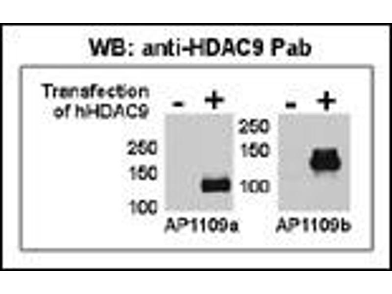- This HDAC9 antibody is generated from rabbits immunized with a KLH conjugated synthetic peptide between 2-32 amino acids from the N-terminal region of human HDAC9.
