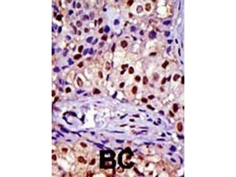 This RAD23A antibody is generated from rabbits immunized with a KLH conjugated synthetic peptide between 303-333 amino acids from the C-terminal region of human RAD23A.