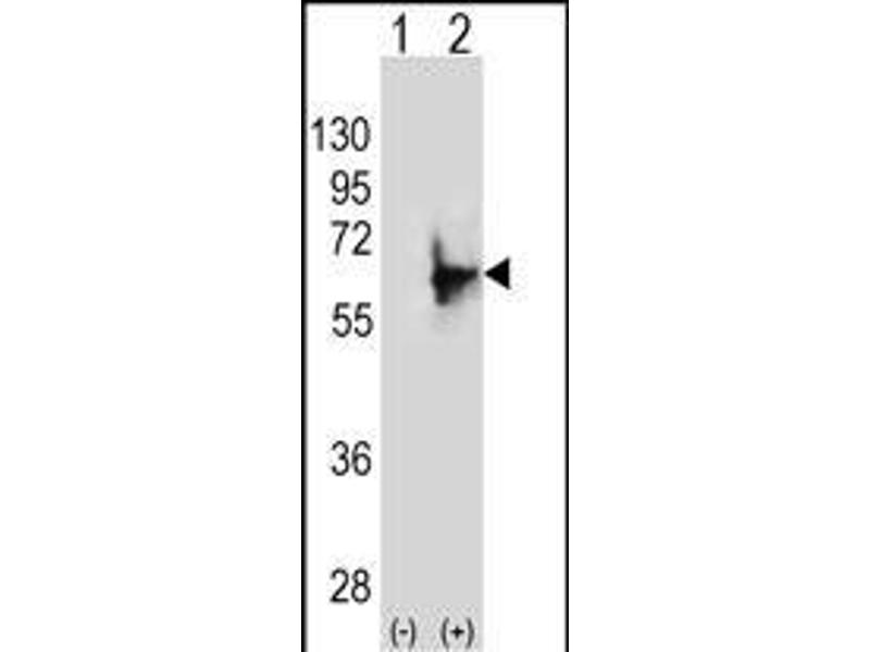 This NMT2 antibody is generated from rabbits immunized with a KLH conjugated synthetic peptide between 16-46 amino acids from the N-terminal region of human NMT2.