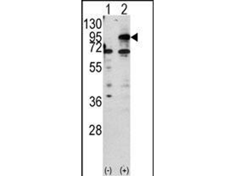 This CPT1B antibody is generated from rabbits immunized with a KLH conjugated synthetic peptide between 606-637 amino acids from the C-terminal region of human CPT1B.