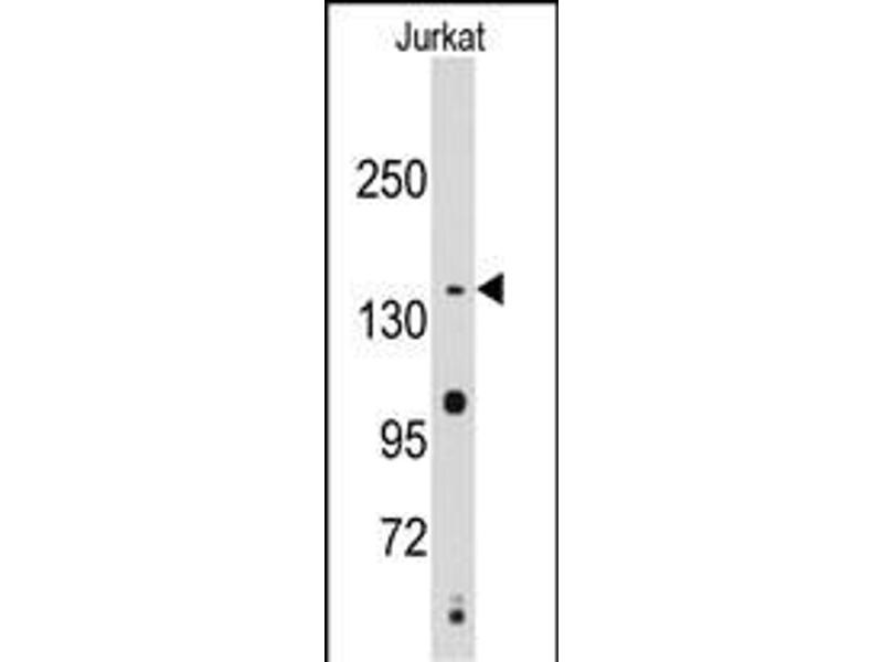 This SMC2 antibody is generated from rabbits immunized with a KLH conjugated synthetic peptide between 1166-1197 amino acids from the C-terminal region of human SMC2.