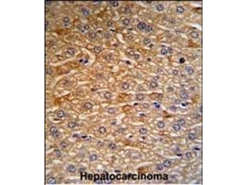 This HRG antibody is generated from rabbits immunized with a KLH conjugated synthetic peptide between 13-42 amino acids from the N-terminal region of human HRG.