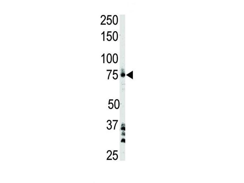 This BTK antibody is generated from rabbits immunized with a KLH conjugated synthetic peptide between 209-239 amino acids from the Central region of human BTK.