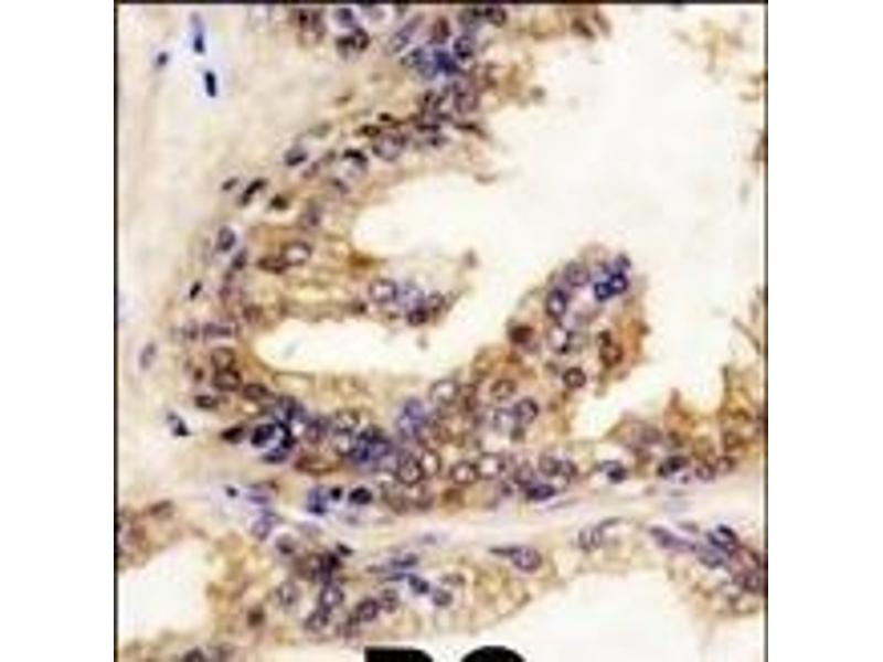 BRAF, a mebmer of the RAF subfamily of Ser/Thr protein kinases, is involved in the transduction of mitogenic signals from the cell membrane to the nucleus. It may play a role in the postsynaptic responses of hippocampal neuron. This cytoplasmic protein is expressed in brain and testis. Defects in BRAF are involved in a wide range of cancers including lung cancer and non-Hodgkin lymphoma (NHL). This protein contains 1 zinc-dependent phorbol-ester and DAG binding domain.