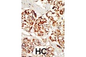 This KSR1 antibody is generated from rabbits immunized with a KLH conjugated synthetic peptide between 1-30 amino acids from the N-terminal region of human KSR1.