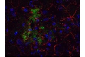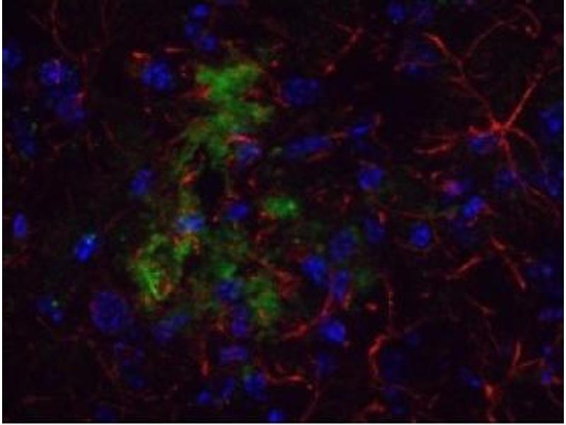 ELISA: 1/10,000. Western blot: 0.5-1.0 μg/mL. A 40-50 kD band consistent with a higher MW precursor isdetected in using whole tissue extracts from mouse brain. Immunofluorescence. Immunohistochemistry: We recommend the use of 4 % PFA for Paraffin embedded tissuesand 10 % Formalin for Frozen tissue for fixation. Other applications not tested. Optimal dilutions are dependent on conditions and should be determined by the user.