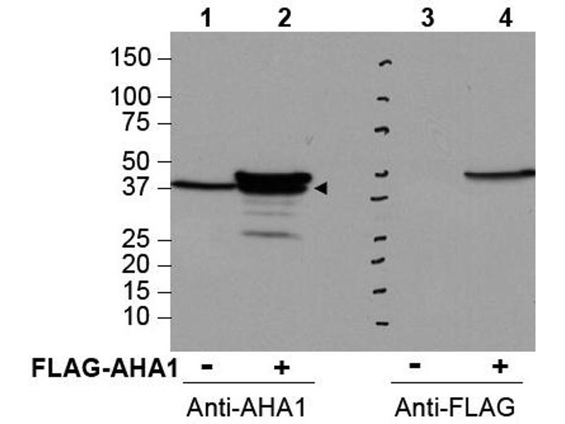 Activator of Hsp90 ATPase (AHA1) stimulates the inherent ATPase cycle of Hsp90, which is essential for its chaperone activity in vivo. The activation and/or stability of many of the key regulatory and signaling proteins of the eukaryotic cell depend on their interaction with the Hsp90 Molecular chaperone. Hsp90 is assisted and regulated by co-chaperones that participate in an ordered series both to assist clientprotein recruitment or release and to modulate progress through the ATPase coupled chaperone cycle. Structural analysis and mutagenesis show that binding of the N-terminal domain of AHA1 to Hsp90 promotes a conformational switch in the middle-segment catalytic loop (aa 370-390) of Hsp90 that exposes the catalytic Arg380 and enables its interaction with ATP in the N-terminal nucleotide-binding domain of the chaperone. Recent studies show that AHA1 modulates Hsp90-dependent stability of the folding of the cystic fibrosis transmembrane conductance regulator (CFTR) in the endoplasmic reticulum (ER). Down-regulation of AHA1 rescues misfolding of CFTR in cystic fibrosis.Synonyms: Activator of 90 kDa heat shock protein ATPase homolog 1, C14orf3, HSPC322