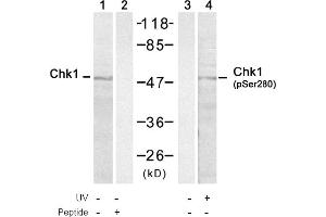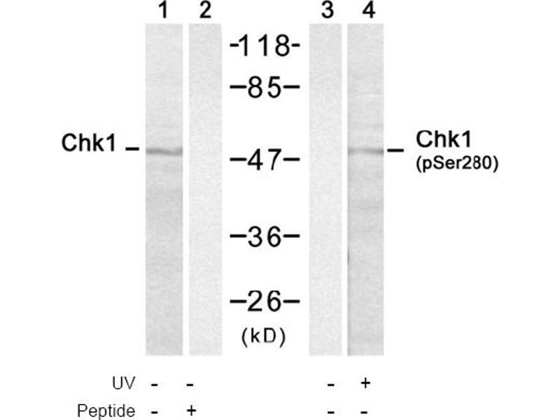 - The antiserum was produced against synthesized phosphopeptide derived from human Chk1 around the phosphorylation site of Serine 280 (V-T-Sp-G-G).
