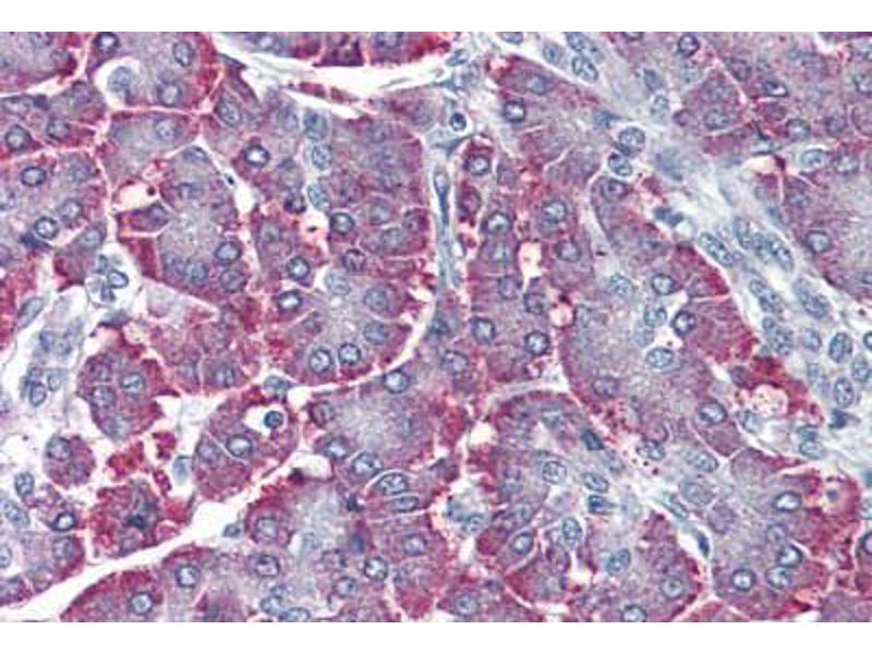 Usage: Immunohistochemistry: This antibody was validated for use in immunohistochemistry on a panel of 21 formalin-fixed, paraffin-embedded (FFPE) human tissues after proteinase K antigen retrieval. After incubation with the primary antibody, slides were incubated with biotinylated secondary antibody, followed by alkaline phosphatase-streptavidin and chromogen. The stained slides were evaluated by a pathologist to confirm staining specificity. The optimal working concentration for this antibody was determined to be 5 μg/mL. -