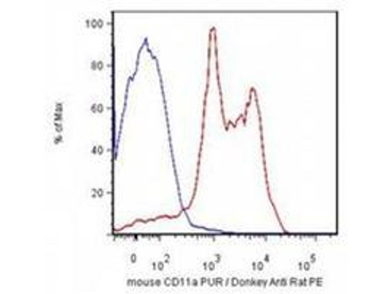 - CD11a (LFA-1 alpha) together with CD18 constitute leukocyte function-associated antigen 1 (LFA-1), the alphaLbeta2 integrin. CD11a is implicated in activation of LFA-1 complex. LFA-1 is expressed on the plasma membrane of leukocytes in a low-affinity conformation. Cell stimulation by chemokines or other signals leads to induction the high-affinity conformation, which supports tight binding of LFA-1 to its ligands, the intercellular adhesion molecules ICAM-1, -2, -3. LFA-1 is thus involved in interaction of various immune cells and in their tissue-specific settlement, but participates also in control of cell differentiation and proliferation and of T-cell effector functions.Synonyms: CD11 antigen-like family member A, Integrin alpha-L, LFA-1, LFA1, Leukocyte adhesion glycoprotein LFA-1 alpha chain, Leukocyte function-associated molecule 1 alpha chain