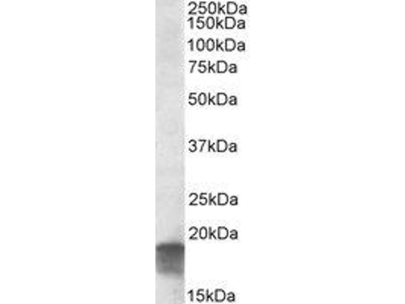 Peptide ELISA: Detection limit dilution 1/16000. Western blot: 0.3-1.0 μg/mL. Approx 19 kDa band observed in Human Brain (Cerebellum)lysates (calculated MW of 12.9 kDa according to NP_001036096.1).