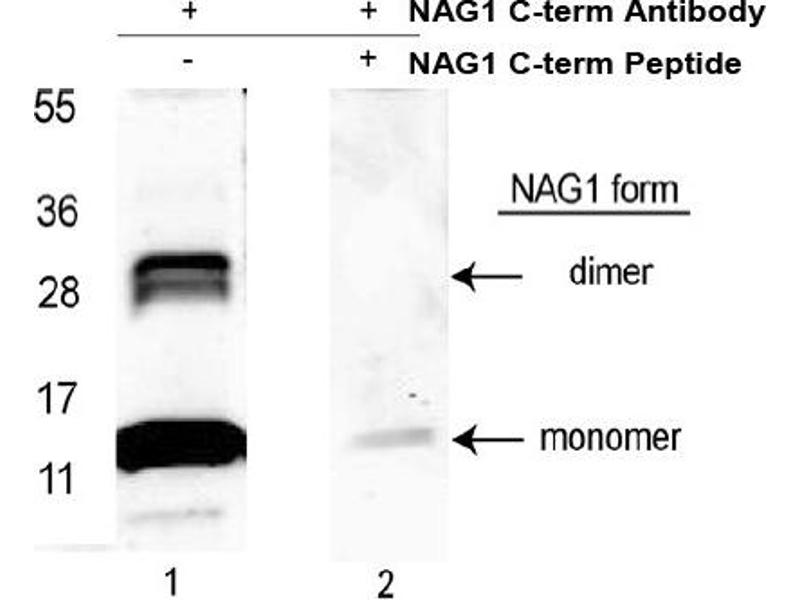 This antibody reacts with the C-terminus of endogenous NAG-1 protein.