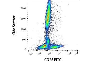 The mouse monoclonal antibody BA5b recognizes an extracellular epitope of CD26, a 110 kDa type II transmembrane glycoprotein, which is a peptidase expressed on mature thymocytes, T cells (especially activated), B cells, NK cells and macrophages.