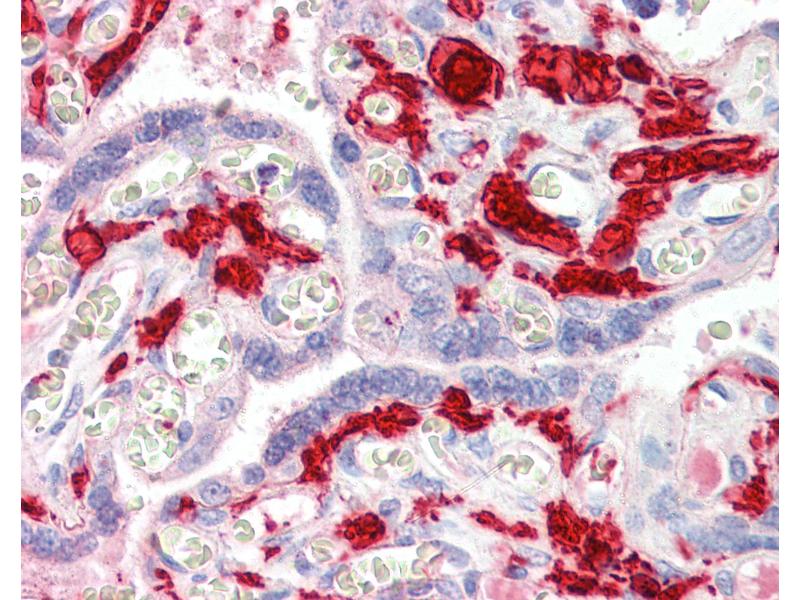 Usage: Immunohistochemistry: This antibody was validated for use in immunohistochemistry on a panel of 21 formalin-fixed, paraffin-embedded (FFPE) human tissues after heat induced antigen retrieval in pH 6.0 citrate buffer. After incubation with the primary antibody, slides were incubated with biotinylated secondary antibody, followed by alkaline phosphatase-streptavidin and chromogen. The stained slides were evaluated by a pathologist to confirm staining specificity. The optimal working concentration for this antibody was determined to be 5 μg/mL. -