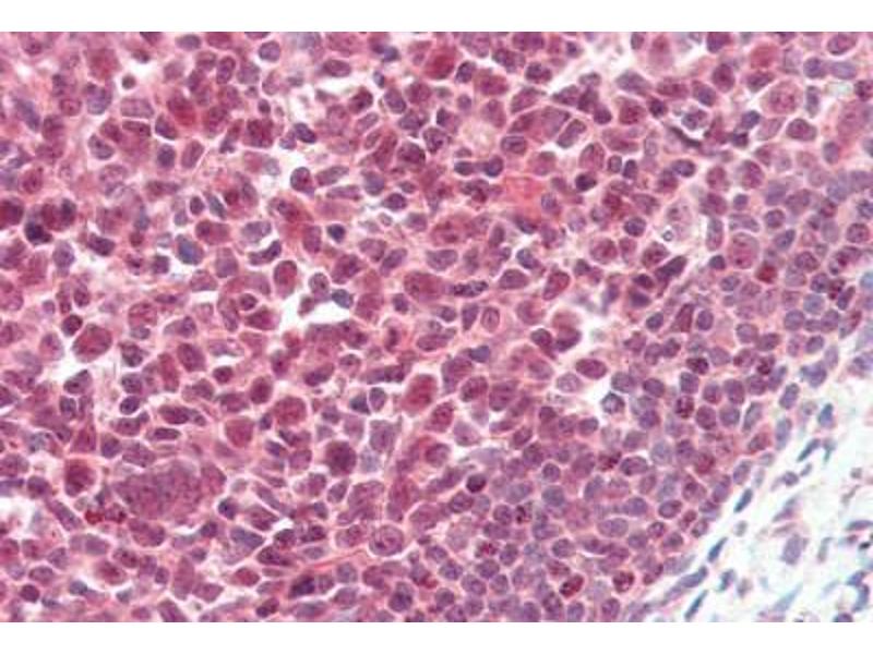 Usage: Immunohistochemistry: This antibody was validated for use in immunohistochemistry on a panel of 21 formalin-fixed, paraffin-embedded (FFPE) human tissues after heat induced antigen retrieval in pH 6.0 citrate buffer. After incubation with the primary antibody, slides were incubated with biotinylated secondary antibody, followed by alkaline phosphatase-streptavidin and chromogen. The stained slides were evaluated by a pathologist to confirm staining specificity. The optimal working concentration for this antibody was determined to be 5 μg/mL. -