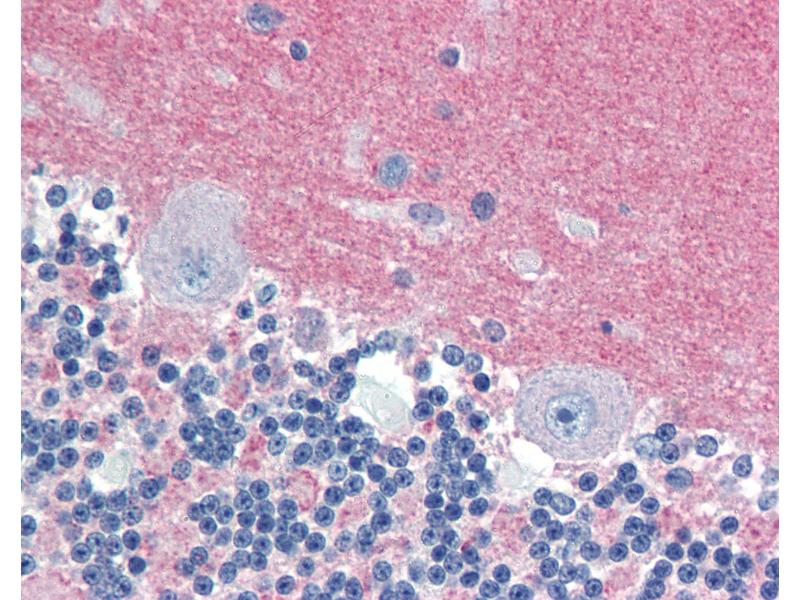 Usage: Immunohistochemistry: This antibody was validated for use in immunohistochemistry on a panel of 21 formalin-fixed, paraffin-embedded (FFPE) human tissues after heat induced antigen retrieval in pH 6.0 citrate buffer. After incubation with the primary antibody, slides were incubated with biotinylated secondary antibody, followed by alkaline phosphatase-streptavidin and chromogen. The stained slides were evaluated by a pathologist to confirm staining specificity. The optimal working concentration for this antibody was determined to be 10 μg/mL. -