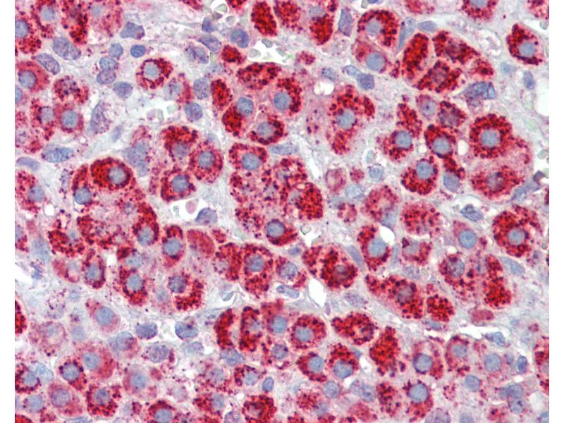 Usage: Immunohistochemistry: This antibody was validated for use in immunohistochemistry on a panel of 21 formalin-fixed, paraffin-embedded (FFPE) human tissues after heat induced antigen retrieval in pH 6.0 citrate buffer. After incubation with the primary antibody, slides were incubated with biotinylated secondary antibody, followed by alkaline phosphatase-streptavidin and chromogen. The stained slides were evaluated by a pathologist to confirm staining specificity. The optimal working concentration for this antibody was determined to be 10 μg/mL. -
