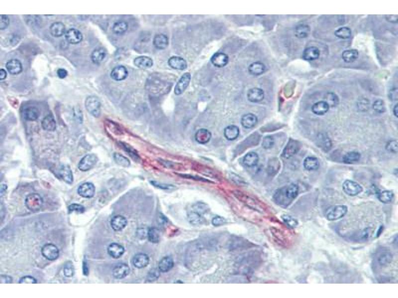 Usage: Immunohistochemistry: This antibody was validated for use in immunohistochemistry on a panel of 21 formalin-fixed, paraffin-embedded (FFPE) human tissues after heat induced antigen retrieval in pH 6.0 citrate buffer. After incubation with the primary antibody, slides were incubated with biotinylated secondary antibody, followed by alkaline phosphatase-streptavidin and chromogen. The stained slides were evaluated by a pathologist to confirm staining specificity. The optimal working concentration for this antibody was determined to be 20 μg/mL.Tested in Western blot using Human Umbilical Vein Endothelial Cell (HUVEC) lysates. -