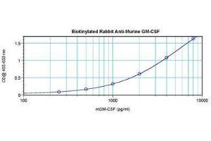 Usage: The applications listed have been tested for the unconjugated form of this product. Other forms have not been tested. ELISA: To detect mGM-CSF by direct ELISA (using 100 μL/well antibody solution) a concentration of 0.25-1 μg/mL of this antibody is required. This biotinylated polyclonal antibody, in conjunction with compatible secondary reagents, allows the detection of at least 0.2-0.4 ng/well of recombinant mGM-CSF. To detect mGM-CSF by sandwich ELISA (using 100 μL/well antibody solution) a concentration of 0.25-1 μg/mL of this antibody is required. This biotinylated polyclonal antibody, in conjunction with Polyclonal Anti-Murine GM-CSF (LS-C104755) as a capture antibody, allows the detection of at least 0.2-0.4 ng/well of recombinant mGM-CSF. Western Blot: To detect mGM-CSF by Western Blot analysis this antibody can be used at a concentration of 0.1-0.2 μg/mL. Used in conjunction with compatible secondary reagents the detection limit for recombinant mGM-CSF is 1.5-3 ng/lane, under either reducing or non-reducing conditions. -