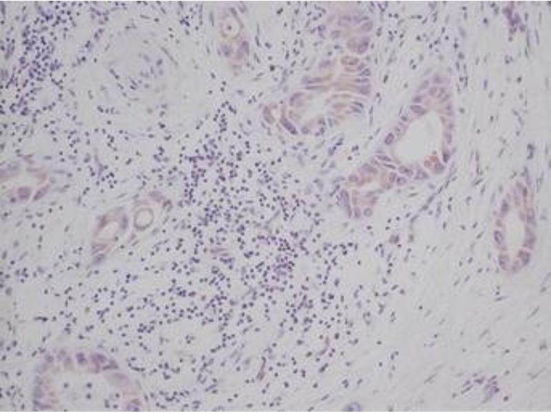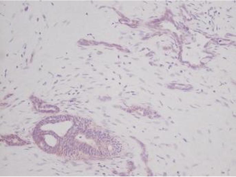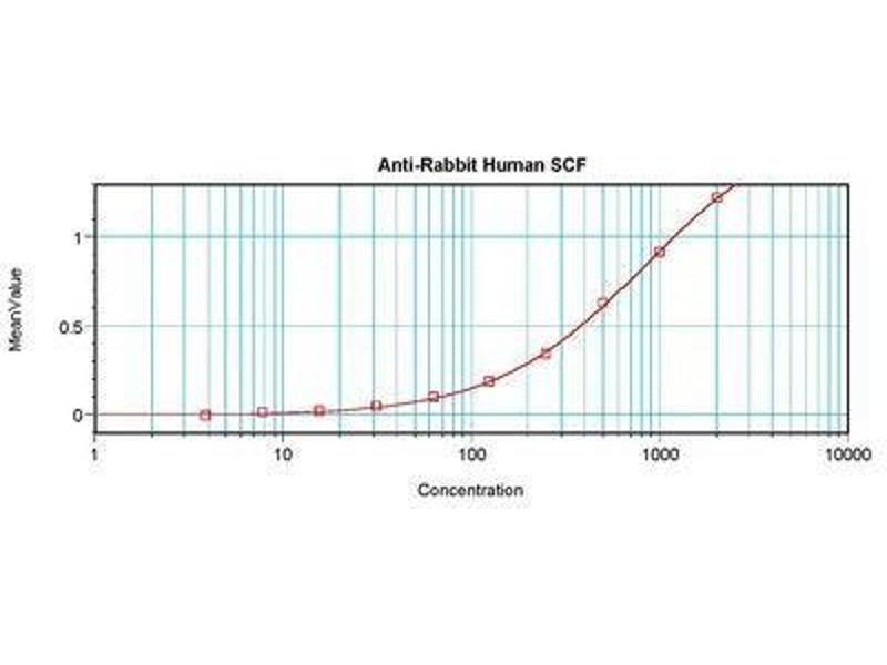 Usage: Immunohistochemistry: This antibody stained formalin-fixed paraffin-embedded sections of human pancreas adenocarcinoma tissue. The recommended concentration is 0.5 μg/mL-1 μg/mL with an overnight incubation at 4 °C. An HRP-labeled polymer detection system was used with an alcohol-soluble AEC chromogen. Optimal results for these conditions were achieved with enzyme induced antigen retrieval (proteinase K) at room temperature. Optimal concentrations and conditions may vary. *Additional Immunostaining data available. Please contact Tech Support for information. Neutralization: To yield one-half maximal inhibition [ND] of the biological activity of hSCF (10.00 ng/mL), a concentration of 0.64-0.96 μg/mL of this antibody is required. ELISA: To detect hSCF by sandwich ELISA (using 100 μL/well antibody solution) a concentration of 0.5-2 μg/mL of this antibody is required. This antigen affinity purified antibody, in conjunction with Biotinylated Anti-Human SCF (LS-C104672) as a detection antibody, allows the detection of at least 0.2-0.4 ng/well of recombinant hSCF. Western Blot: To detect hSCF by Western Blot analysis this antibody can be used at a concentration of 0.1-0.2 μg/mL. Used in conjunction with compatible secondary reagents the detection limit for recombinant hSCF is 1.5-3 ng/lane, under either reducing or non-reducing conditions. -
