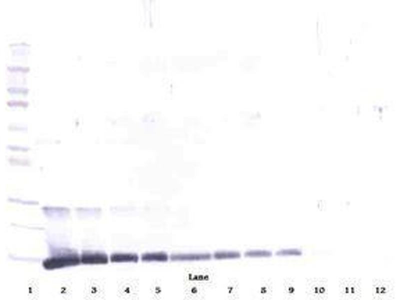 Usage: Neutralization: To yield one-half maximal inhibition [ND] of the biological activity of Murine IL-4 (5 ng/mL), a concentration of 0.78-1.16 μg/mL of this antibody is required. ELISA: To detect Murine IL-4 by sandwich ELISA (using 100 μL/well antibody solution) a concentration of 0.5-2 μg/mL of this antibody is required. This antigen affinity purified antibody, in conjunction with Biotinylated Anti-Murine IL-4 (LS-C104823) as a detection antibody, allows the detection of at least 0.2-0.4 ng/well of recombinant Murine IL-4. Western Blot: To detect Murine IL-4 by Western Blot analysis this antibody can be used at a concentration of 0.1-0.2 μg/mL. When used in conjunction with compatible secondary reagents, the detection limit for recombinant Murine IL-4 is 1.5-3 ng/lane, under either reducing or non-reducing conditions. -