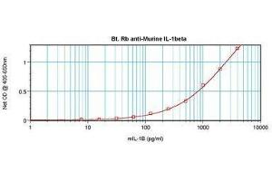 Usage: The applications listed have been tested for the unconjugated form of this product. Other forms have not been tested. ELISA: To detect mIL-1beta by direct ELISA (using 100 μL/well antibody solution) a concentration of 0.25-1 μg/mL of this antibody is required. This biotinylated polyclonal antibody, in conjunction with compatible secondary reagents, allows the detection of at least 0.2-0.4 ng/well of recombinant mIL-1beta. To detect mIL-1beta by sandwich ELISA (using 100 μL/well antibody solution) a concentration of 0.25-1 μg/mL of this antibody is required. This biotinylated polyclonal antibody, in conjunction with Polyclonal Anti-Murine IL-1beta (LS-C104813) as a capture antibody, allows the detection of at least 0.2-0.4 ng/well of recombinant mIL-1beta. Western Blot: To detect mIL-1beta by Western Blot analysis this antibody can be used at a concentration of 0.1-0.2 μg/mL. Used in conjunction with compatible secondary reagents the detection limit for recombinant mIL-1beta is 1.5-3 ng/lane, under either reducing or non-reducing conditions. -