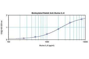 Usage: The applications listed have been tested for the unconjugated form of this product. Other forms have not been tested. ELISA: To detect Murine IL-6 by direct ELISA (using 100 ml/well) a concentration of approximately 1 μg/mL of this antibody is required. This biotinylated polyclonal antibody allows the detection of at least 0.2-0.4 ng/well of recombinant Murine IL-6. To detect Murine IL-6 by sandwich ELISA (using 100 μL/well antibody solution) a concentration of 0.25-1 μg/mL of this antibody is required. This biotinylated polyclonal antibody, in conjunction with Polyclonal Anti-Murine IL-6 (LS-C104805) as a capture antibody, allows the detection of at least 0.2-0.4 ng/well of recombinant Murine IL-6. Western Blot: To detect Murine IL-6 by Western Blot analysis this antibody can be used at a concentration of 0.1-0.2 μg/mL. When used in conjunction with compatible secondary reagents, the detection limit for recombinant Murine IL-6 is 1.5-3 ng/lane, under either reducing or non-reducing conditions. -