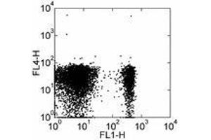 Usage: The 4B12 antibody has been tested by flow cytometric analysis of C57BL/6, Balb/C and SJL/J splenocytes and thymocytes. Important: Staining with the 4B12 monoclonal antibody requires different conditions than typically used for surface-antigen staining. Please use the protocol below. Moreover, we have found that staining at 37 °C, rather than 4 °C, results in brighter 4B12 staining, as well as better resolution between positive and negative populations. Please see data for the PE 4B12 (LS-C106090) which demonstrates a comparison of staining at 4 °C and 37 °C. Staining with 4B12 at 37 °C is not expected to interfere with co-staining other antigens, however this should be evaluated for individual experiments.1. Prepare cell suspension as normal and block FcgammaIIIR/FcgammaIIR with 5 μg/million cells purified anti-mouse CD16/32 (LS-C107169) for 15 minutes on ice. If red blood cell lysis is carried out as part of cell preparation, ensure that fixatives are not present in the red blood cell lysis solution as this will eliminate 4B12 staining. Protocol for RBC Lysis of Mouse Spleen.2. Without washing, add 1 μg/million cells 4B12 and incubate in a 37 °C water bath or at 4 °C (please see notes above) for 0.5 hours.3. Wash cells 1X with 3 mL of Flow Cytometry Staining Buffer and decant supernatant.4. Analyze cells on flow cytometer or proceed with secondary staining on ice as normal. Note: Co-staining mouse CCR7 with the 4B12 antibody and the CCR7 ligand CCL19-Fc may be difficult due to different binding conditions required for the antibody versus the ligand, and steric hindrance which may prevent co-staining of 4B12 and CCL19-Fc. Cross-blocking experiments have demonstrated that 4B12 binding is able to prevent the detectable binding of CCL19-Fc, however not the opposite. Furthermore, the correlation between 4B12 and CCL19-Fc staining may be difficult to predict due to the presence of unknown CCL19-Fc receptors in addition to CCR7. The applications listed have been tested for the unconjugated form of this product. Other forms have not been tested. -