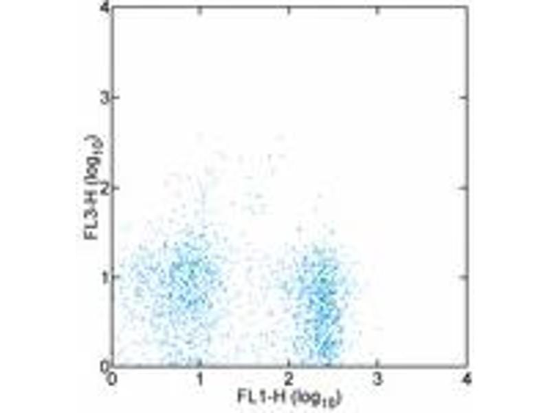 Usage: The 4B12 antibody has been tested by flow cytometric analysis of C57BL/6, Balb/C and SJL/J splenocytes and thymocytes. Important: Staining with the 4B12 monoclonal antibody requires different conditions than typically used for surface-antigen staining. Please use the protocol below. Moreover, we have found that staining at 37 °C, rather than 4 °C, results in brighter 4B12 staining, as well as better resolution between positive and negative populations. Please see data for the PE 4B12 (LS-C106090) which demonstrates a comparison of staining at 4 °C and 37 °C. Staining with 4B12 at 37 °C is not expected to interfere with co-staining other antigens, however this should be evaluated for individual experiments.1. Prepare cell suspension as normal and block FcgammaIIIR/FcgammaIIR with 5 μg/million cells purified anti-mouse CD16/32 (LS-C107169) for 15 minutes on ice. If red blood cell lysis is carried out as part of cell preparation, ensure that fixatives are not present in the red blood cell lysis solution as this will eliminate 4B12 staining. Protocol for RBC Lysis of Mouse Spleen.2. Without washing, add 1 μg/million cells 4B12 and incubate in a 37 °C water bath or at 4 °C (please see notes above) for 0.5 hours.3. Wash cells 1X with 3 mL of Flow Cytometry Staining Buffer and decant supernatant.4. Analyze cells on flow cytometer or proceed with secondary staining on ice as normal. Note: Co-staining mouse CCR7 with the 4B12 antibody and the CCR7 ligand CCL19-Fc may be difficult due to different binding conditions required for the antibody versus the ligand, and steric hindrance which may prevent co-staining of 4B12 and CCL19-Fc. Cross-blocking experiments have demonstrated that 4B12 binding is able to prevent the detectable binding of CCL19-Fc, however not the opposite. Furthermore, the correlation between 4B12 and CCL19-Fc staining may be difficult to predict due to the presence of unknown CCL19-Fc receptors in addition to CCR7. The applications listed have been tested for the unconjugated form of this product. Other forms have not been tested. -