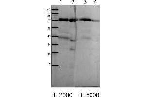 - Expected / apparent Molecular Weight of the Antigene: 88 / 75 kDa (ocassionally a processing intermediate at 78 kDa is observed)