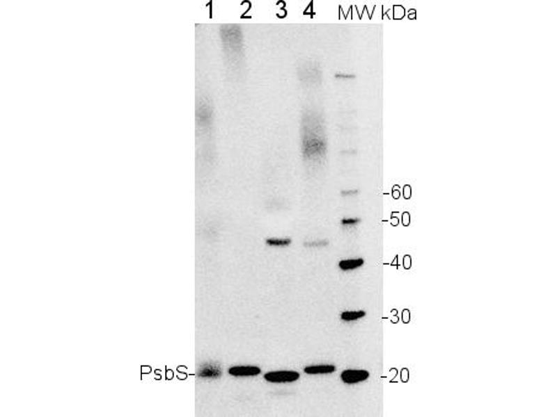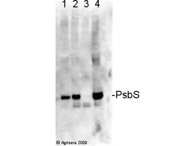 - KLH-conjugated synthetic peptide derived from available di and monocot PsbS sequences, including Arabidopsis thaliana (At1g44575)