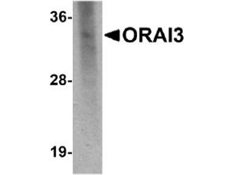 ELISA. Western Blot: ORAI3 antibody can be used for detection of ORAI3 at 2-4 μg/mL. Immunohistochemistry: 2.5 μg/mL. Positive Control: Rat spleen tissue lysate.