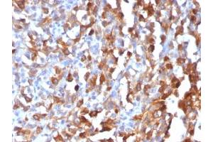 1. The prediluted format is supplied in a dropper bottle and is optimized for use in IHC. After epitope retrieval step (if required), drip mAb solution onto the tissue section and incubate at RT for 30 min.\. Western blot: 0.5-1 μg/mL,FACS: 0.5-1 μg/10^6 cells,Immunofluorescence: 0.5-1 μg/mL,Immunohistochemistry (FFPE): 0.5-1 μg/mL for 30 minutes at RT,Prediluted IHC only format: incubate for 30 min at RT (1)