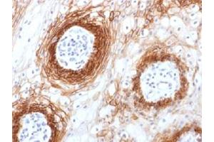 - This antibody recognizes an epitope encoded by exon v6 on the variant portion of human CD44. The CD44 Molecule belongs to a family of cellular adhesion molecules found on a wide range of normal and malignant cells in epithelial, mesothelial and hemopoiesis tissues. CD44 is a single gene with 20 exons, of which 10 are normally expressed to encode the basic CD44 (H-CAM) molecule. The additional 10 exons (v1 to v10) are only expressed by alternative splicing of the nuclear RNA. The expression of specific cell adhesion molecule CD44 splice variants has been reported to be associated with metastasis in certain human malignancies.
