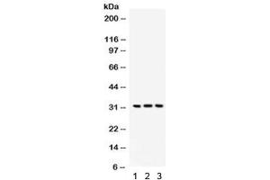 Optimal dilution of the Bcl10 antibody should be determined by the researcher.\. Western blot: 0.1-0.5 μg/mL