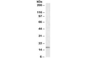 1. This IBA1 antibody is specific to isoform 3.\. Western blot: 0.5-1.5 μg/mL,Immunohistochemistry (FFPE): 2-4 μg/mL,ELISA (peptide) LOD: 1:32000