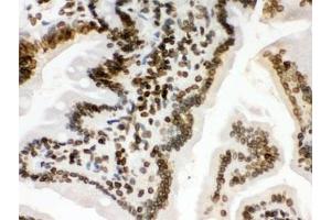 Optimal dilution of the LMNB1 antibody should be determined by the researcher.\. Western blot: 0.1-0.5 μg/mL,IHC (Paraffin): 0.5-1 μg/mL,IHC (Frozen): 0.5-1 μg/mL,ICC (Paraffin): 0.5-1 μg/mL